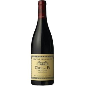 Le Morgon Côte du Py du Château des Jacques est un gamay long et élégant élevé dix mois en fûts de chêne (50% neufs, 50% fûts d'un vin). La Côte du Py se situe sur un terroir composé de gore volcanique bleu, qui confère à ses vins des tanins puissants et de la complexité.